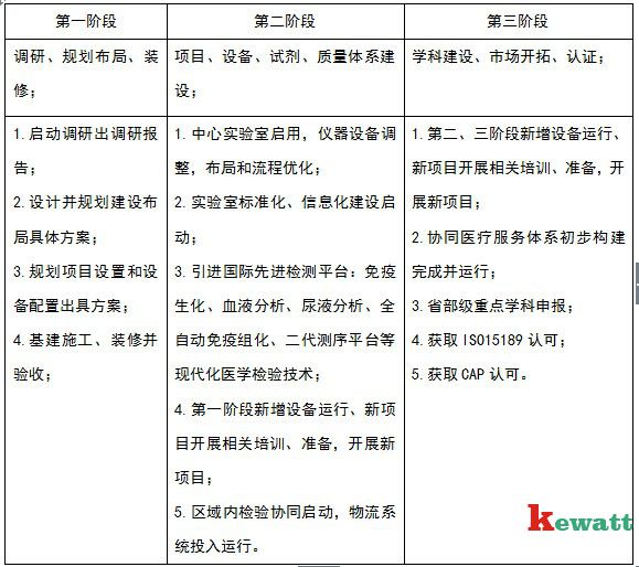 三、醫(yī)學檢驗中心分期建設規(guī)劃方案